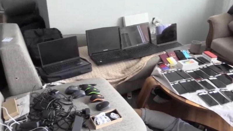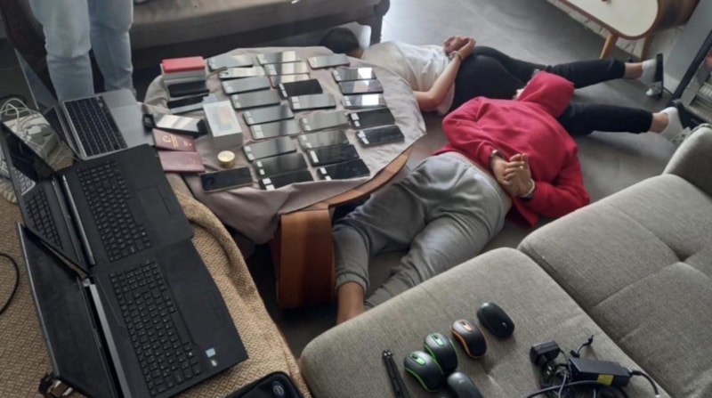 Havuzlu lüks bir sitedeki dairelerde yapılan aramada 37 adet cep telefonu, 6 adet laptop, 20 adet banka kartı, bir miktar para, esrar ve uyuşturucu hap ele geçirildi.