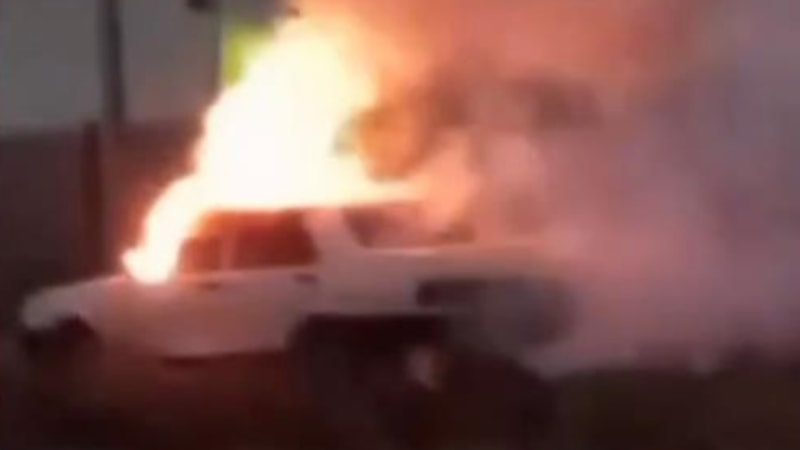 Otomobil yanarken o anları şarkı söyleyerek cep telefonuyla kaydetti.