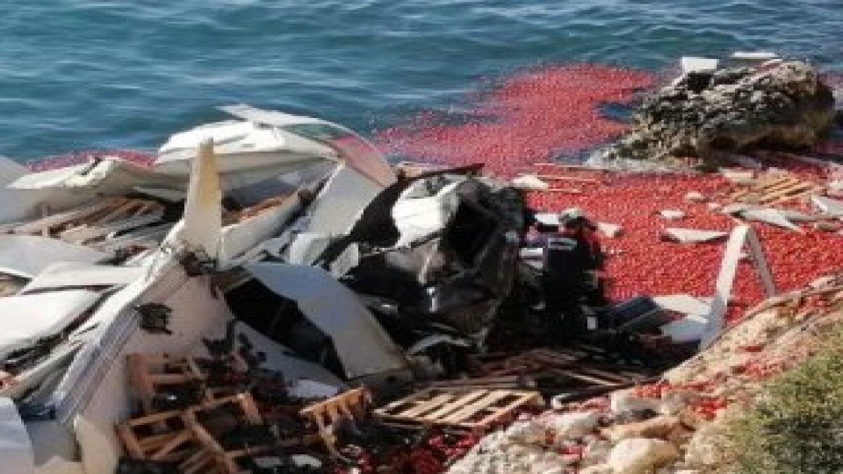 Deniz kıyısındaki kayalıklara düşen tırın şoförü Kartal, olay yerinde yaşamını yitirdi.