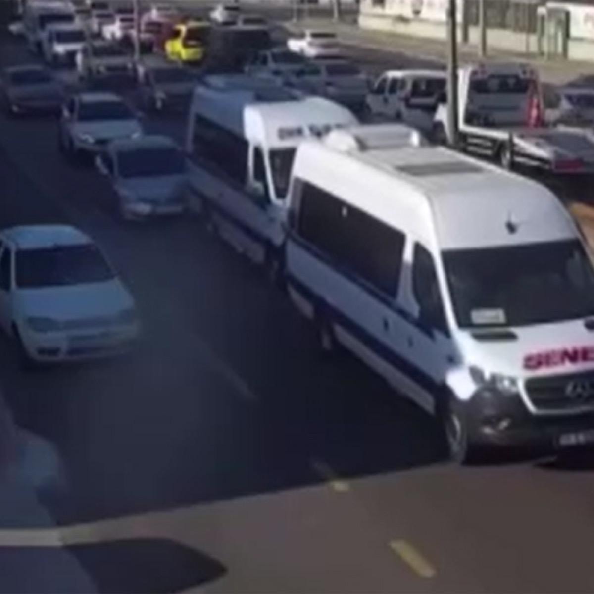 Olayda herhangi bir yaralanma yaşanmadı ancak o anlar bir araç kamerasına saniye saniye yansıdı.