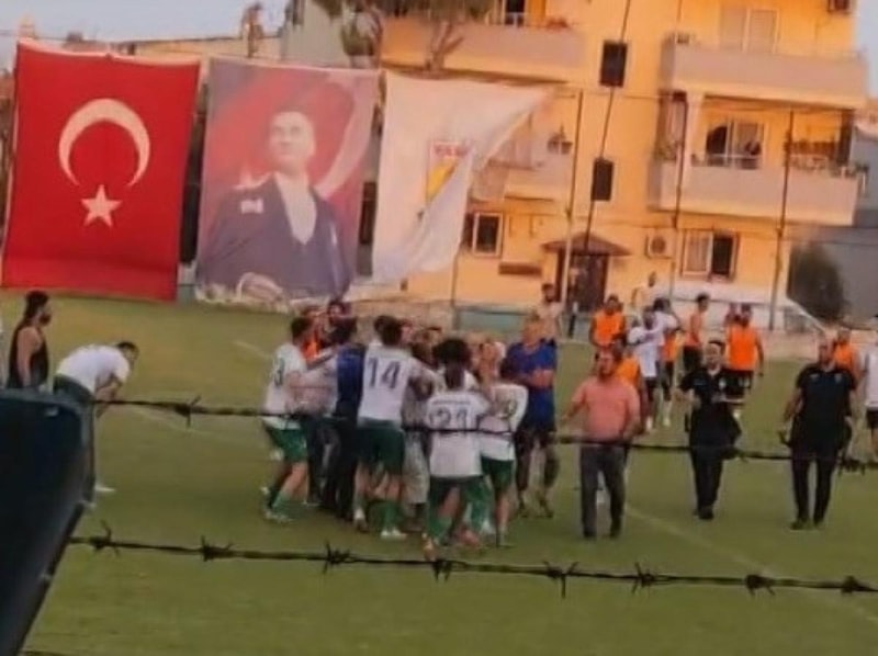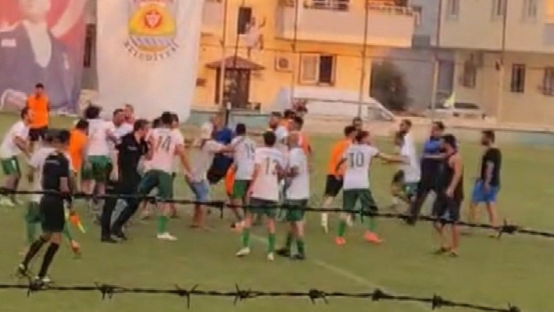 Tarsus Belediyesi’nin düzenlediği futbol turnuvasında saha bir anda karıştı, futbolcular birbirine tekme ve yumruklarla saldırdı.
