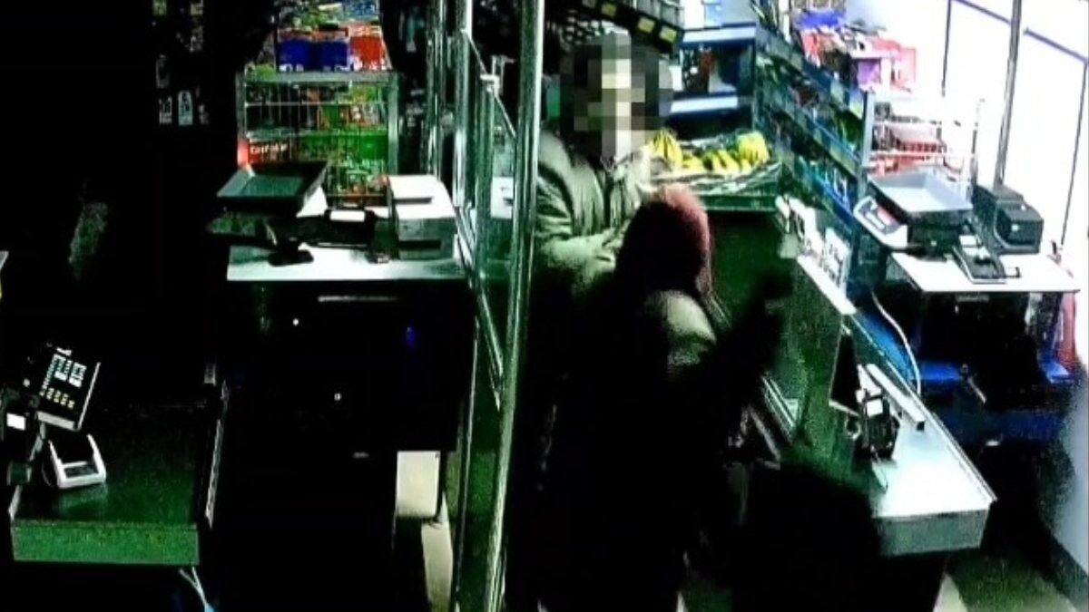 Ellerinde silah, bıçak ve satır bulunan şüpheliler, çalışanları zorla mağazanın içerisine sokup, boğazlarına satır dayayarak 470 lira para ve 1 cep telefonunu gasbetti.