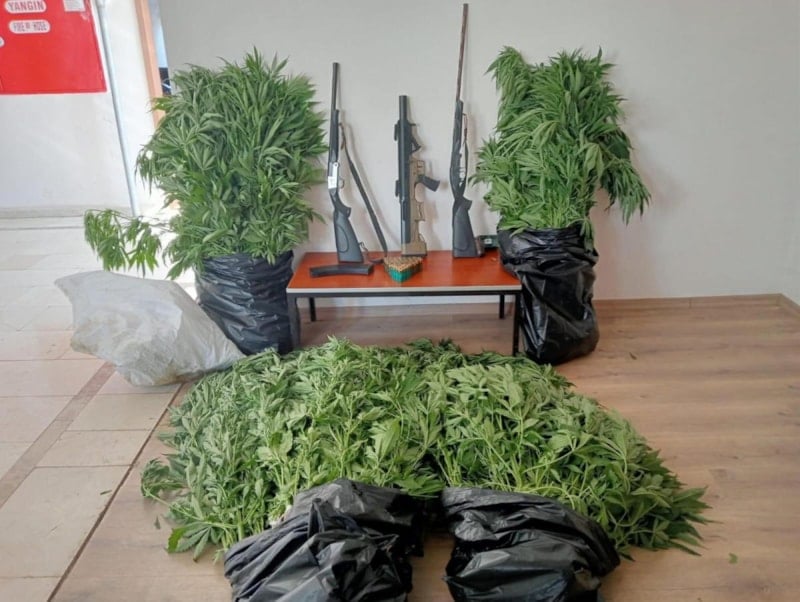 Yapılan aramada, 48 metrekare genişliğinde çamurla sıvanmış sera içerisine kurulan bahçede 201 kök Hint keneviri ile 3 adet ruhsatsız tüfek ele geçirdi.