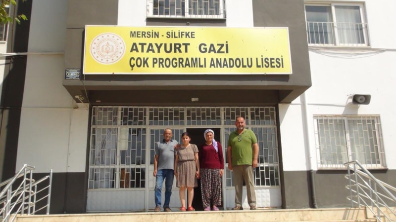 Silifke İlçe Milli Eğitim Müdürü Fevzi Kültiğin Eroğlu, Atayurt Gazi Çok Programlı Anadolu Lisesi Müdürü Cafer Selvi ve sınıf öğretmeni ile birlikte Nazalin Selvi'yi evinde ziyaret etti.