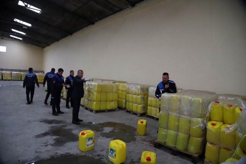 Depoda yapılan aramalarda, ayçiçeği yağı etiketiyle ambalajlanmış ancak içi su-yağ karışımıyla doldurulduğu belirlenen 3 bin 650 adet 20 litrelik bidon bulundu.