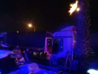 D-400 karayolu Mersin istikameti Tarsus çıkışında, sürücüsü öğrenilemeyen 41 R 925 plakalı tır önünde aynı istikamette seyir eden Ali Sun idaresindeki 33 CSH 35 plakalı tırla çarpıştı.