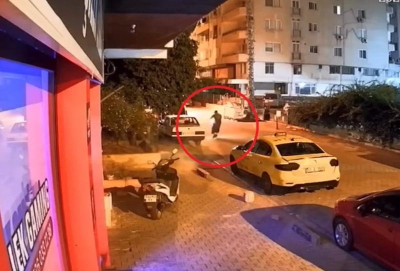Mersin'in Yenişehir ilçesinde tamamen siyah giyimli bir şüpheli, bodrum katında dikim atölyesi olan yerde bir süre oyalandıktan sonra patenle kayarak elindeki silahla defalarca ateş açtı.