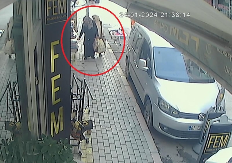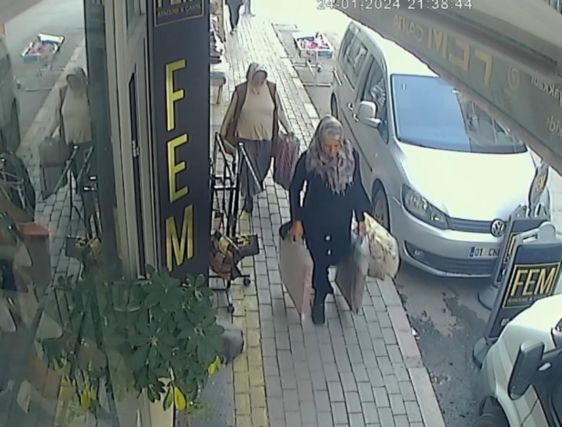 2 kadının mağaza önündeki tezgahta duran kilimleri çaldığı anlar güvenlik kamerasına yansıdı. Dükkan sahibi kayıtları izleyince kadınlardan şikayetçi oldu.