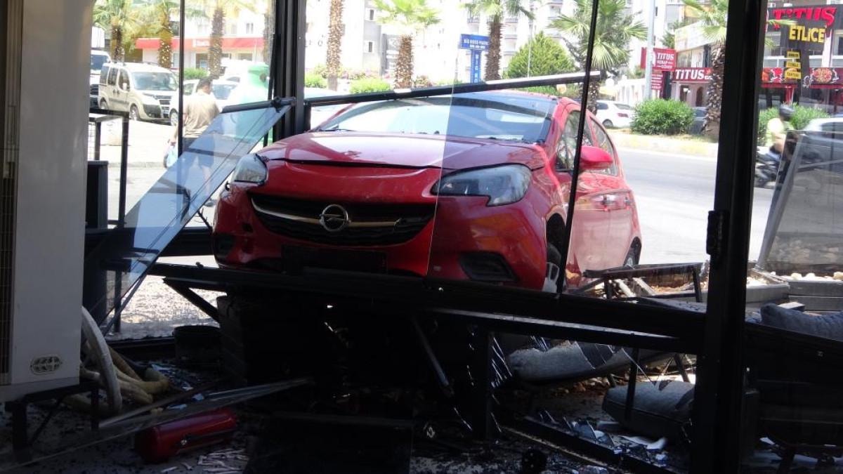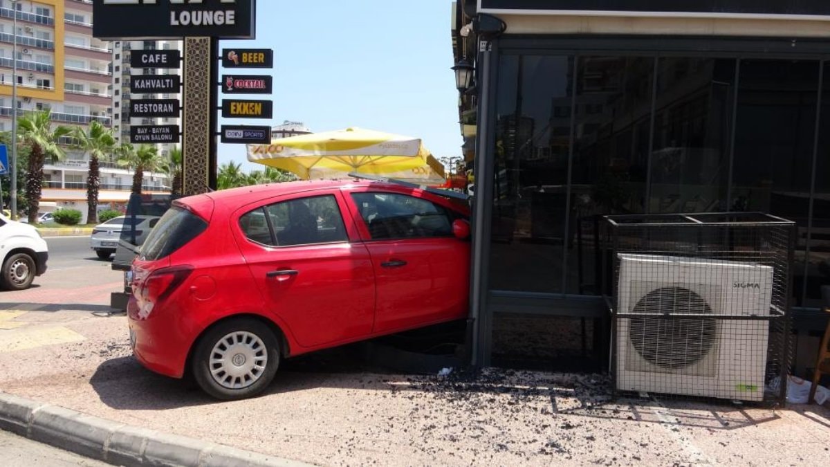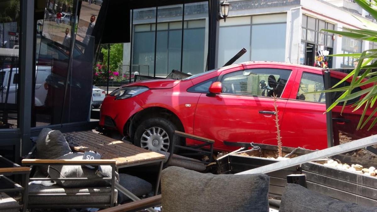 Sürücünün direksiyon hakimiyetini kaybetmesi sonucu otomobil, önce kaldırıma çıktı, ardından cadde üzerindeki kafeye daldı.
