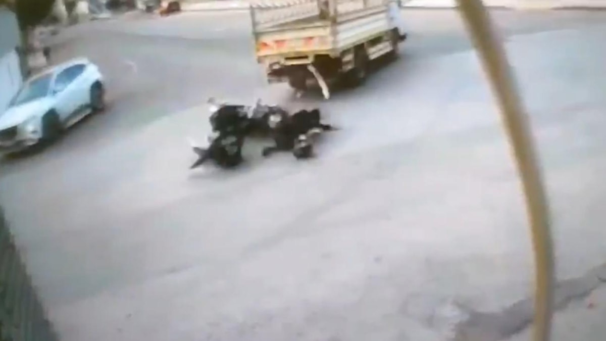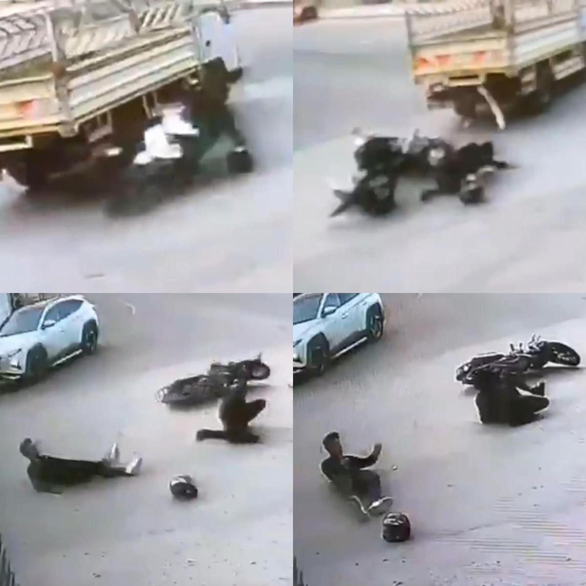 Motosikletli ve arkadaki yolcusu o sırada zor anlar yaşarken E.T. idaresindeki 33 VEK 62 plakalı kamyonet, Mersin-Antalya D-400 karayolu istikametine doğru döndüğü sırada karşı caddeden gelen A.B.K. yönetimindeki motosikleti panikle kaydırdı.
