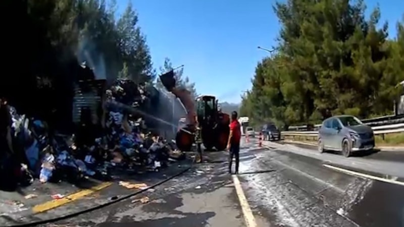 Kısa sürede olay yerine gelen ekipler, metrelerce yükselen alevlere hızla müdahale ederek yangını kontrol altına aldı. Tırın kupa kısmı dorseden ayrılarak, alevlerin aracın tamamına ve çevredeki ormanlık alana sıçraması önlendi.