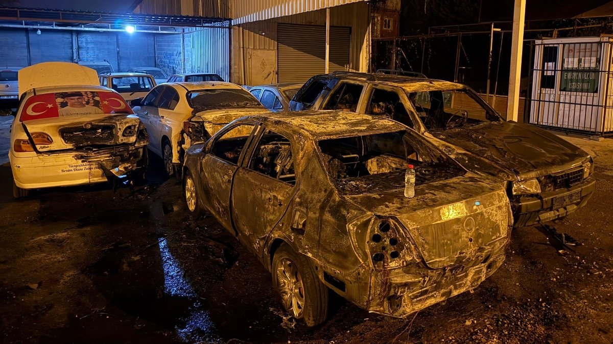 Kimliği belirsiz bir kişi, tamir için getirilen ve dükkanların önünde park halinde bulunan 5 aracı, yanıcı madde kullanarak ateşe verdi.