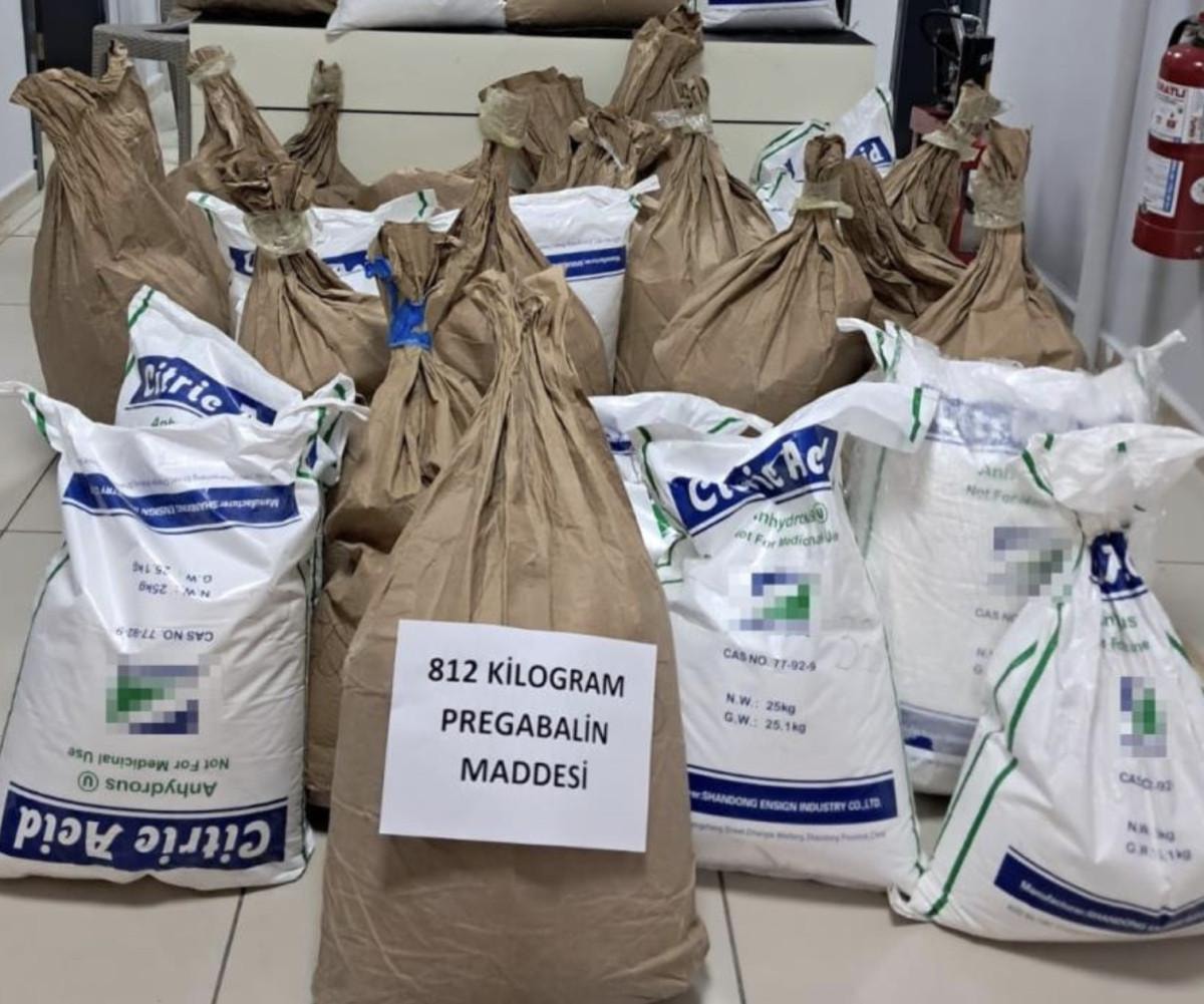 Üretim yeri olarak kullanılan depoda yapılan aramada ise 35 torbada 812 kilogram toz sentetik ecza maddesi ele geçirildi.