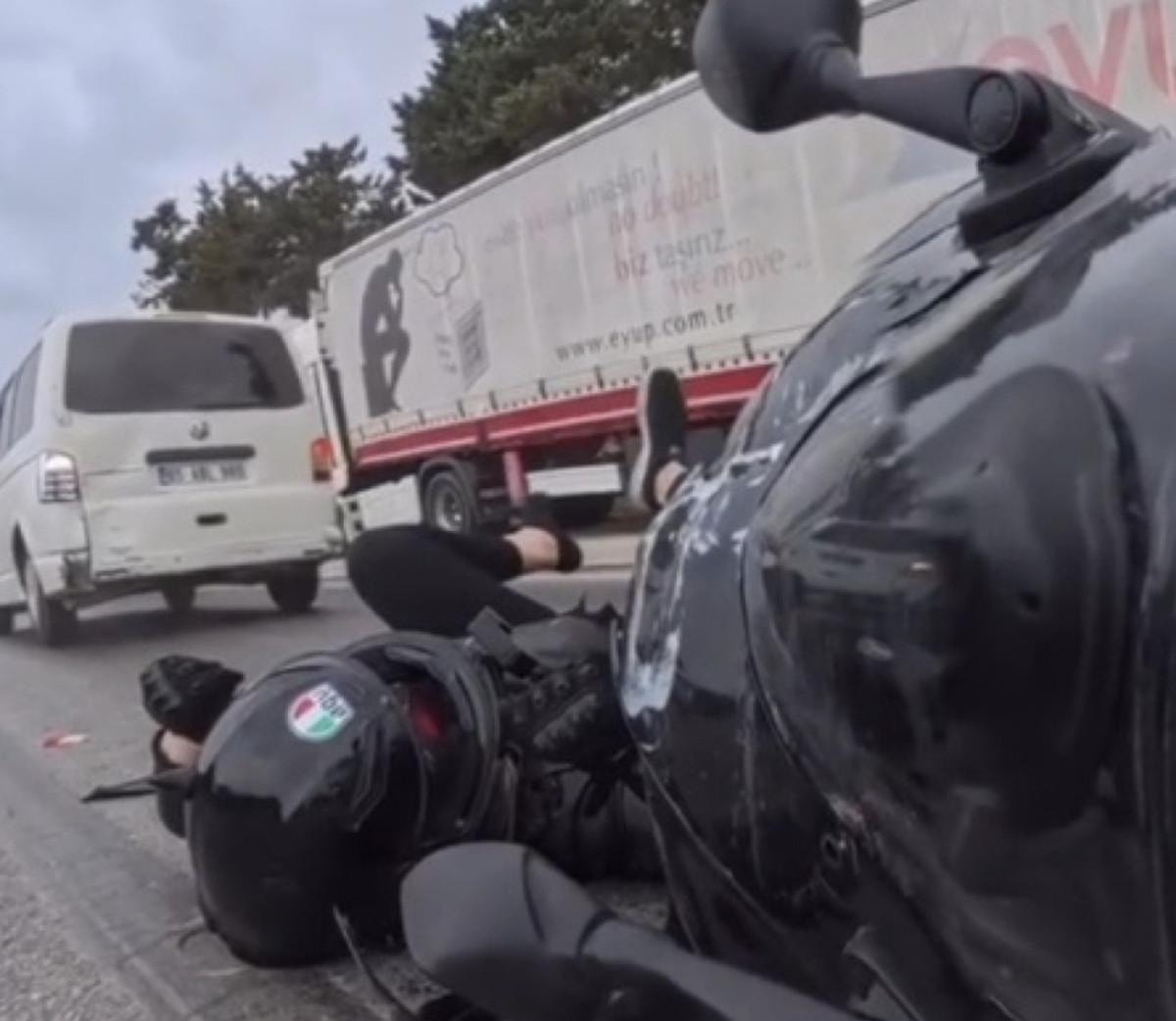 Çarpmanın etkisiyle motosikletin sürücüsü yola savruldu.