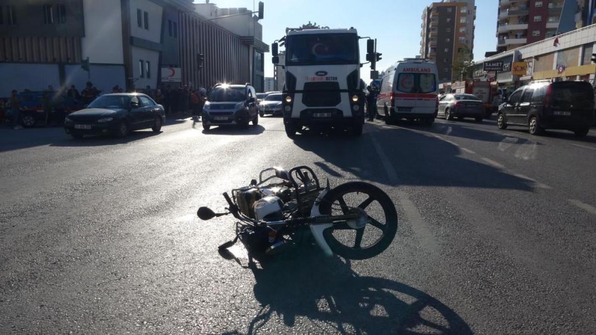 Motosikletten düşen sürücü beton mikserinin altında kaldı.