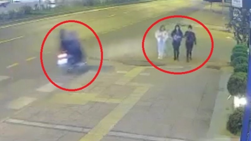 Mersin'in Mezitli ilçesi Yenimahalle Mahallesi'nde seyir halindeki motosikletten, kaldırımda yürüyen 3 öğrenciye doğru bir cisim fırlatıldı.
