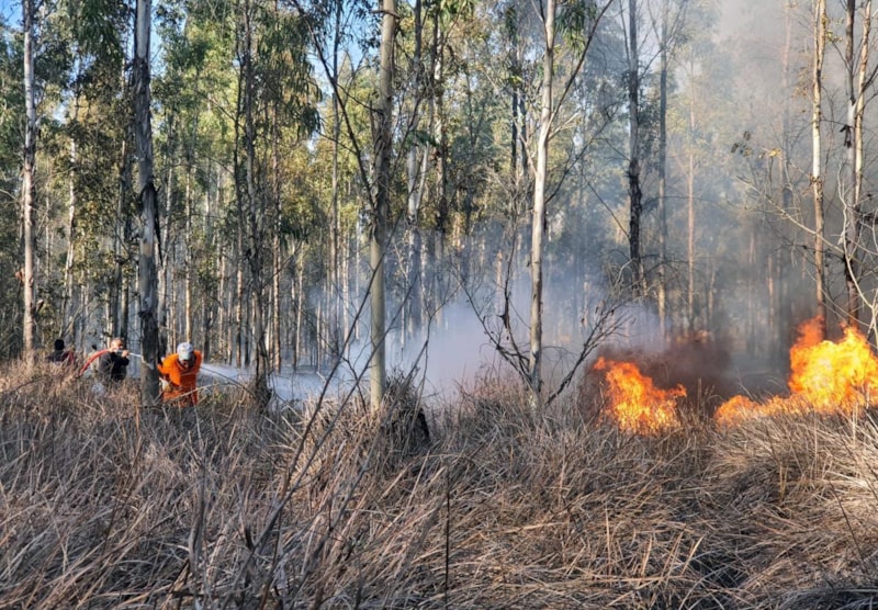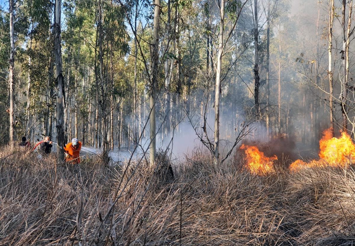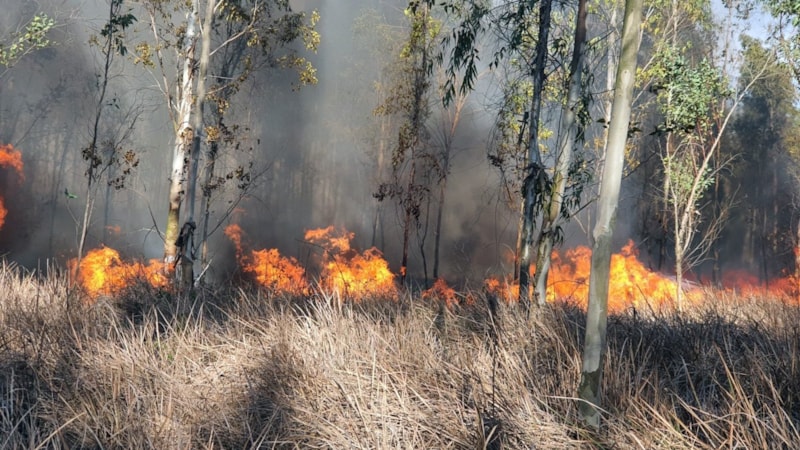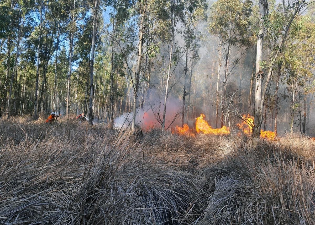 Okaliptusların bulunduğu orman alanında, rüzgarın etkisiyle büyüyen yangının söndürülmesi için müdahale edildi.