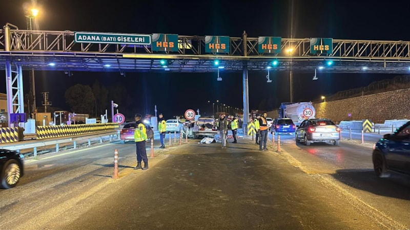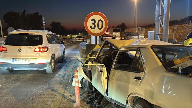 Otoyolda bir otomobilin gişelerdeki beton bariyerlere çarptıği azada 2 kişi öldü, 4'ü çocuk 5 kişi yaralandı.