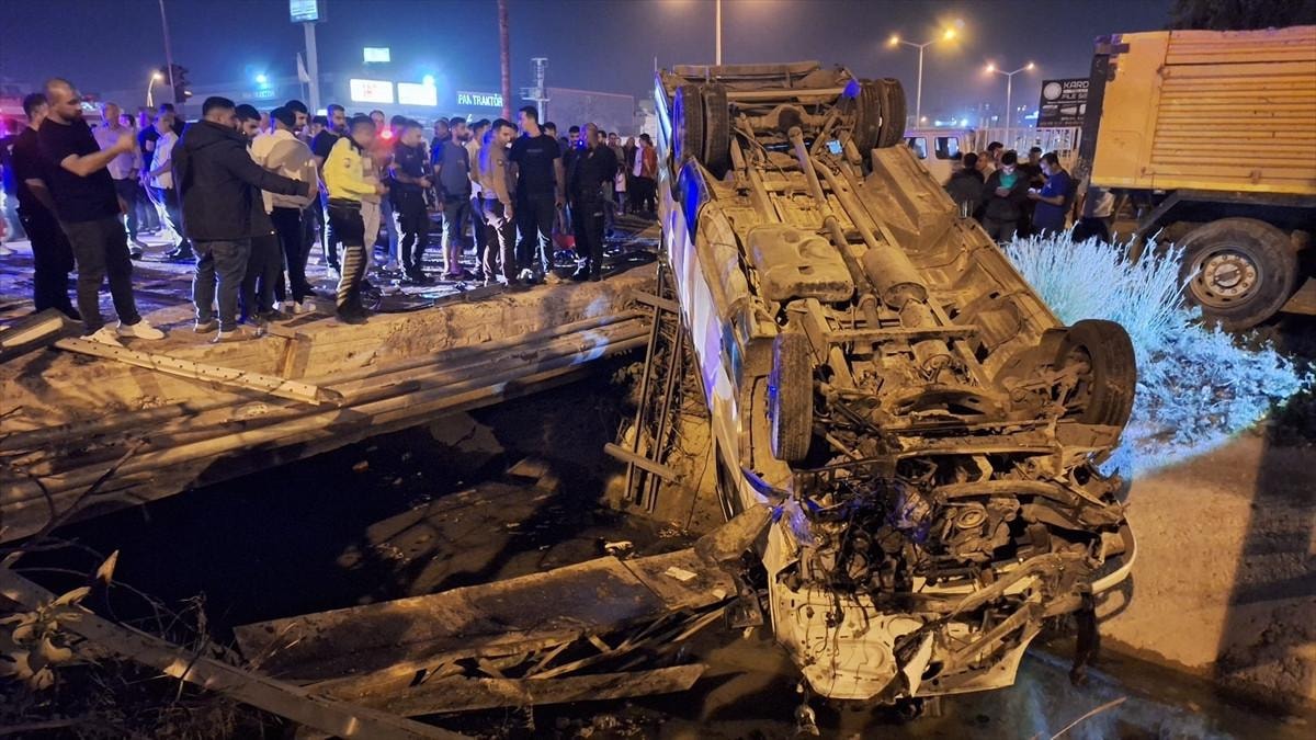 Mersin'in Tarsus ilçesi D-400 kara yolu hal kavşağında E.K. (18) idaresindeki otomobille çarpışan T.T. (58) yönetimindeki minibüs, yol kenarındaki sulama kanalına devrildi.