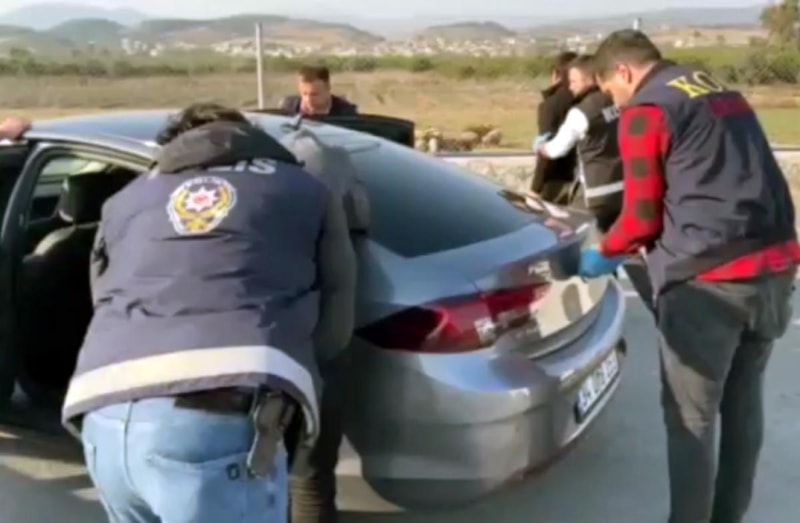 Drone destekli takibin ardından otomobil, uygulama noktasında durduruldu.