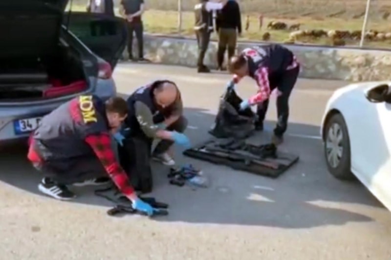 Araçta yapılan aramalarda; 39 ruhsatsız tabanca, 1 tabanca susturucusu,1 çelik yelek, 2 tüfek, tabanca ve tüfeklere ait şarjörler ile çok sayıda fişek bulundu.