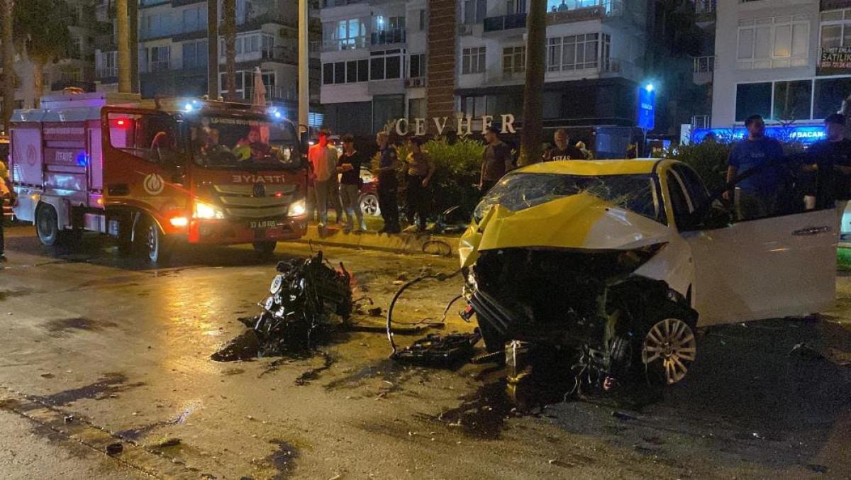 Adnan Menderes Bulvarı’nda seyir halindeki 33 T 1178 plakalı ticari taksi, direksiyon hakimiyetinin kaybedilmesiyle refüje çıktı ve ardından ağaca çarptı. Çarpmanın etkisiyle araç savrulurken motoru ve parçaları yola saçıldı.