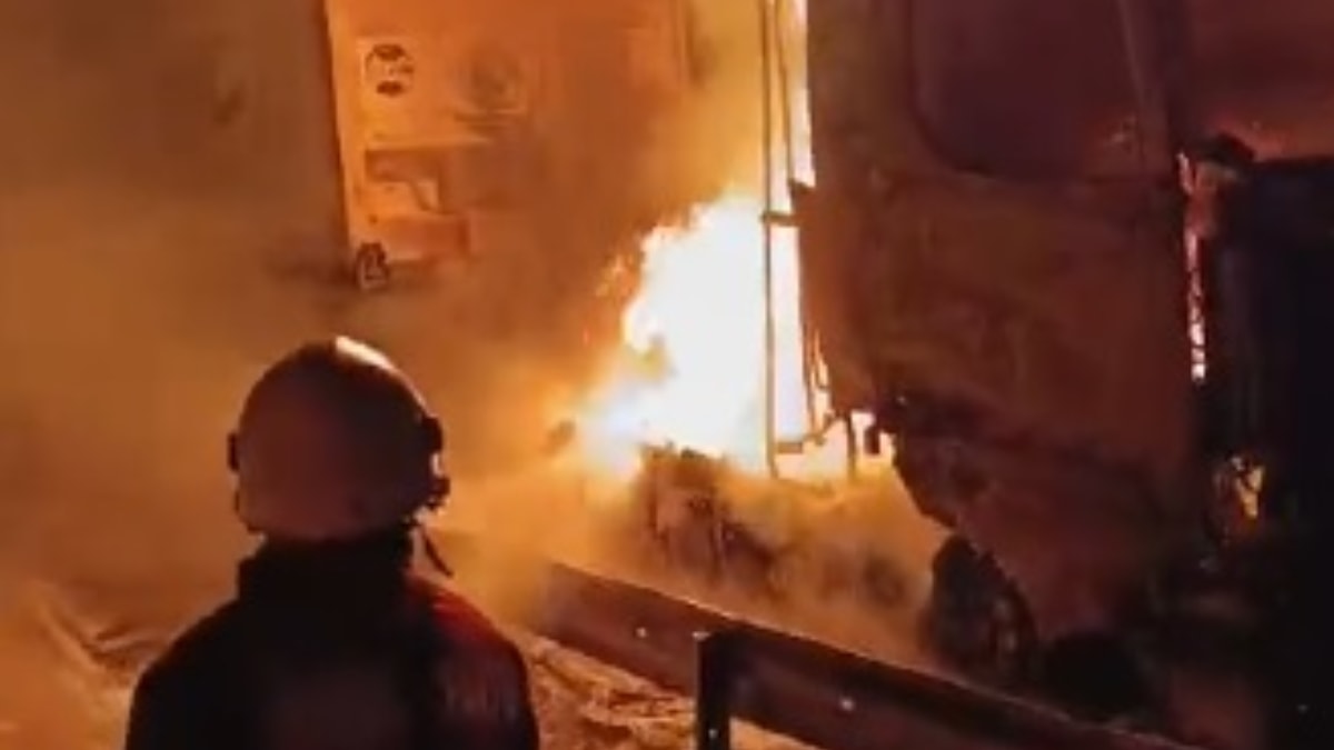 Öte yandan TIR'ın alev alev yandığı anlar ise cep telefonu kamerasıyla kaydedildi.