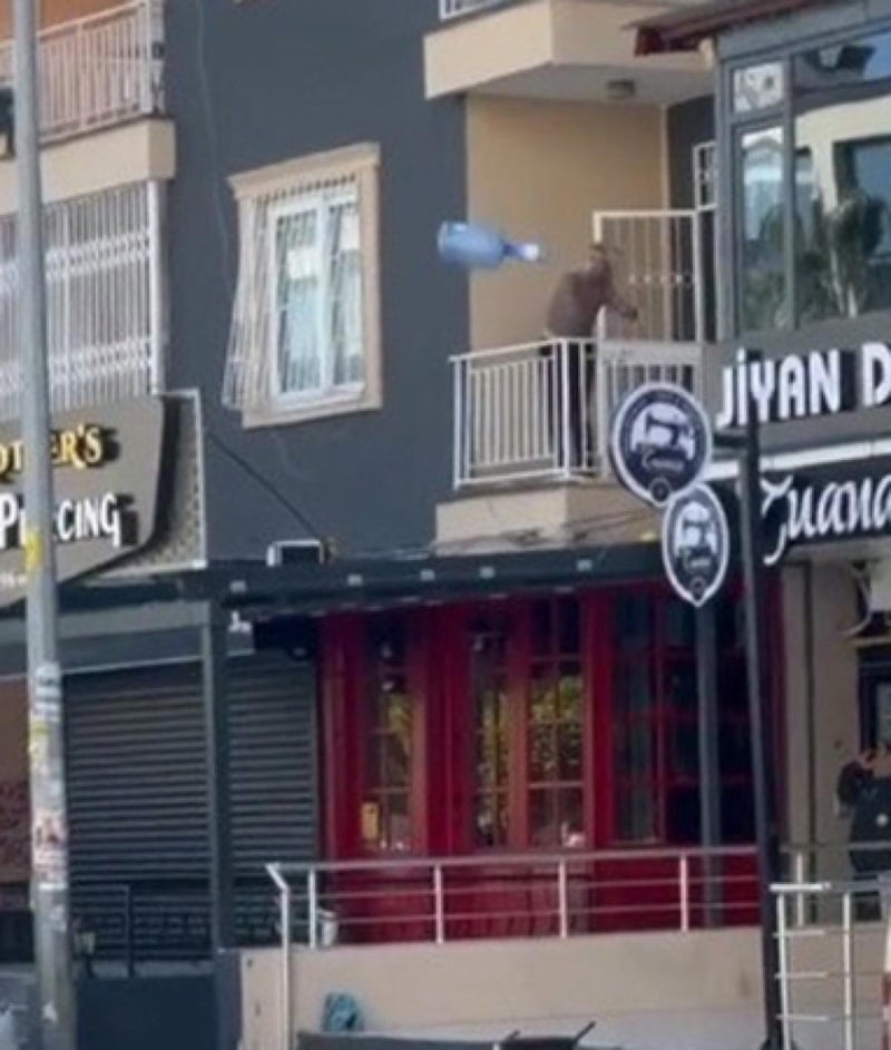 Mersin'de sinir krizi geçiren bir kadın evinin balkonundan sandalye, damacana ve mutfak eşyalarını sokağa fırlattı.