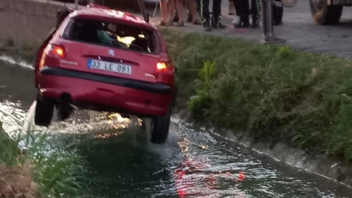 Gece saat 04.30 sularında 23 Nisan Caddesi'nde gerçekleşen olayda araç, içindekilerle birlikte sulama kanalına düştü.
