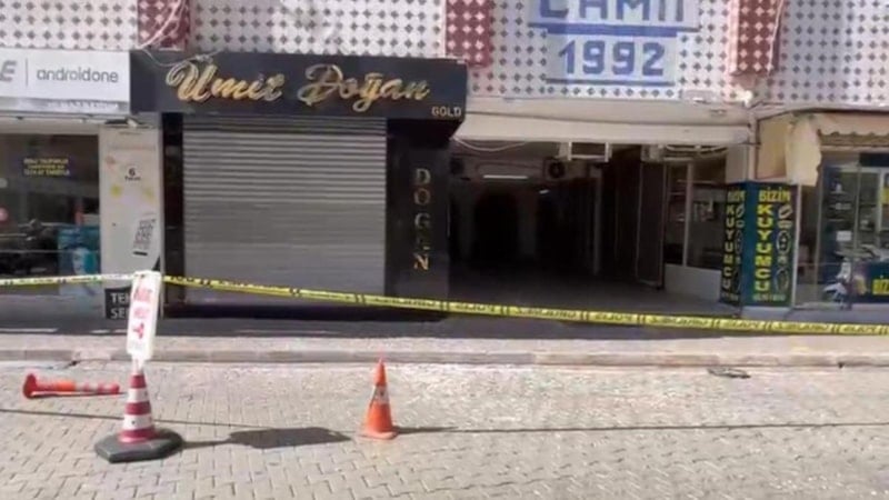 Daha sonra caminin giriş kısmı olan bölgeye tedbir amaçlı şerit çekildi.