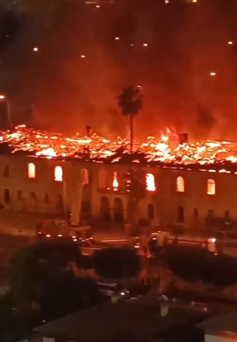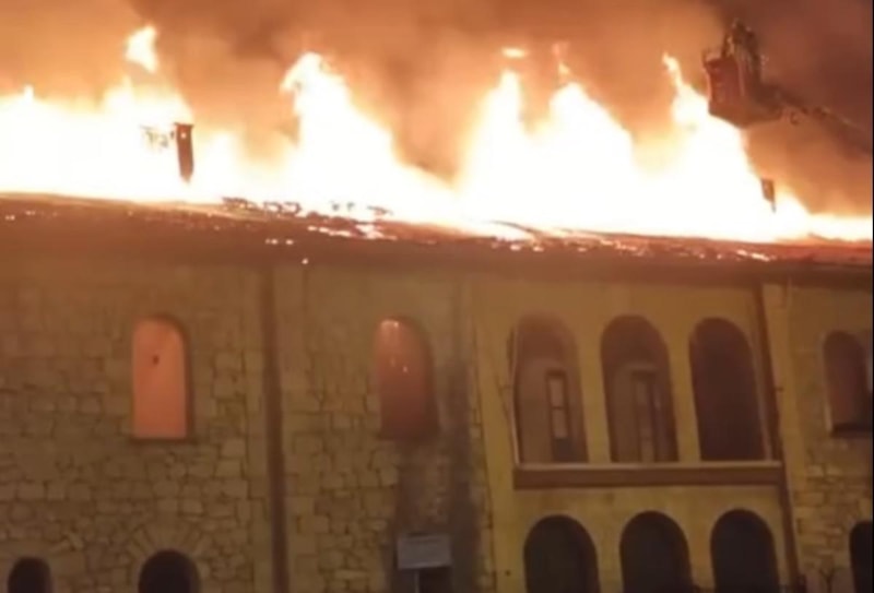 Tarihi Halk Kütüphanesinde çıkan yangın kısa sürede büyürken, yangını söndürmek üzere bölgeye çok sayıda itfaiye ekibi sevk edildi.