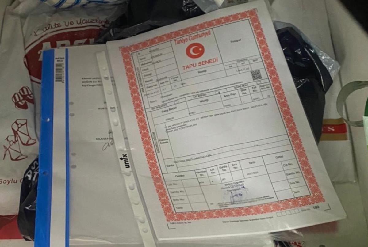 Adreslerde yapılan aramalarda; 97 adet senet, 32 adet tapu, 9 adet müştekilere ait satış sözleşmesi, 2 adet POS cihazı, 7 adet müştekilere ait emlak satış sözleşmesi, vekaletname, 250 adet mermi, 299 bin TL nakit para ve 4 adet cep telefonuna el konuldu.