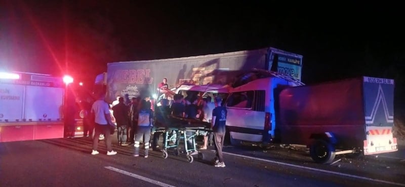 Sağlık görevlilerinin yaptığı kontrolde minibüsteki 3 kişinin hayatını kaybettiği, 16 kişinin de yaralandığı belirlendi.