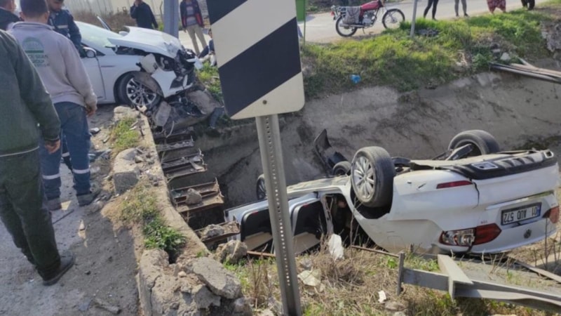 Mersin'de iki otomobilin çarpışması sonucu su kanalına yuvarlanan araçtaki 1 kişi öldü, her iki araçtaki 3 kişi ise yaralandı.