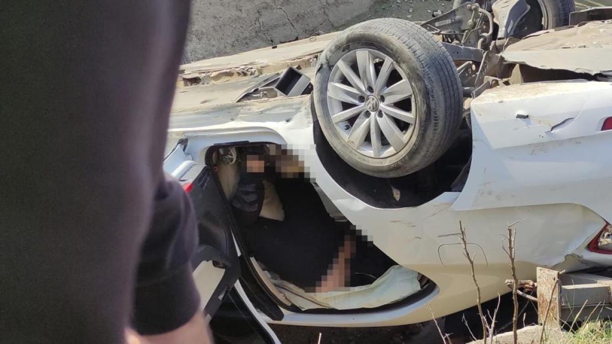 Çarpışmanın etkisiyle Volkswagen marka araç su kanalına yuvarlanırken, kaza yerinde adeta can pazarı yaşandı.
