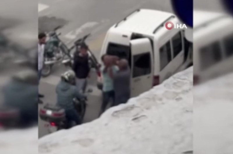 Bu sırada aracından çıkan hafif ticari araç sürücüsü, yine tahrayı çıkarıp vurmak istedi.