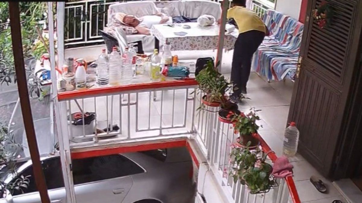 Bu sırada kapının önündeki balkonunda uyuyan ev sahibi M.Y.'ye aldırış etmeyen hırsız, önce ayakkabıları daha sonra telefonunu çalıp koşar adımlarla evden uzaklaştı.