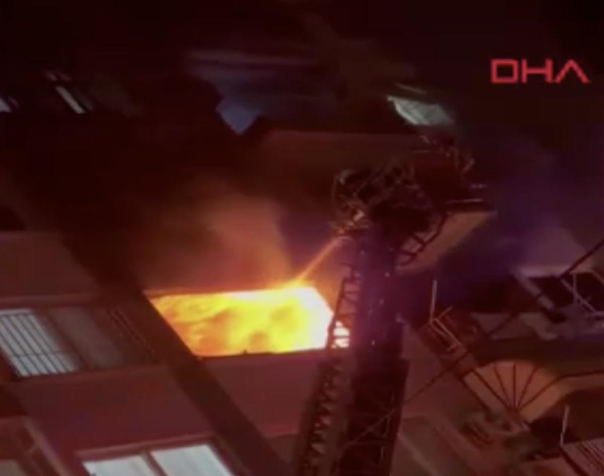 Sebebi bilinmeyen yangın kısa sürede tüm daireyi sarınca komşular durumu fark etti.