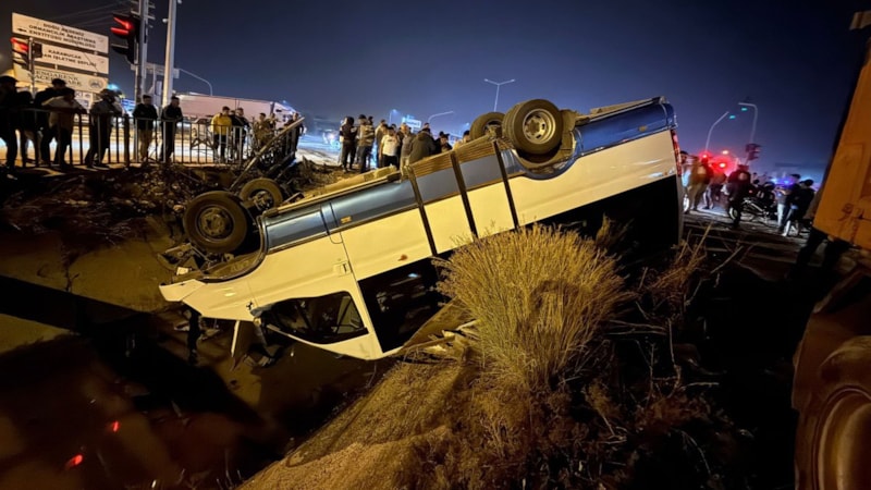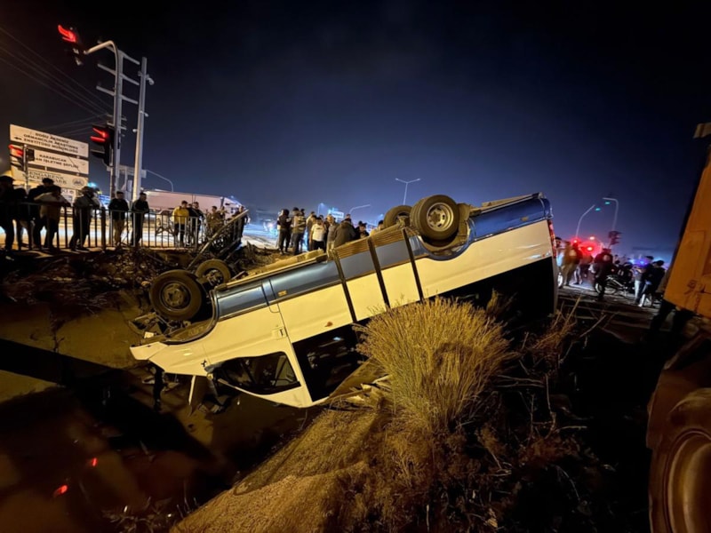 Çarpışmanın etkisiyle minibüs yol kenarındaki sulama kanalına devrildi.