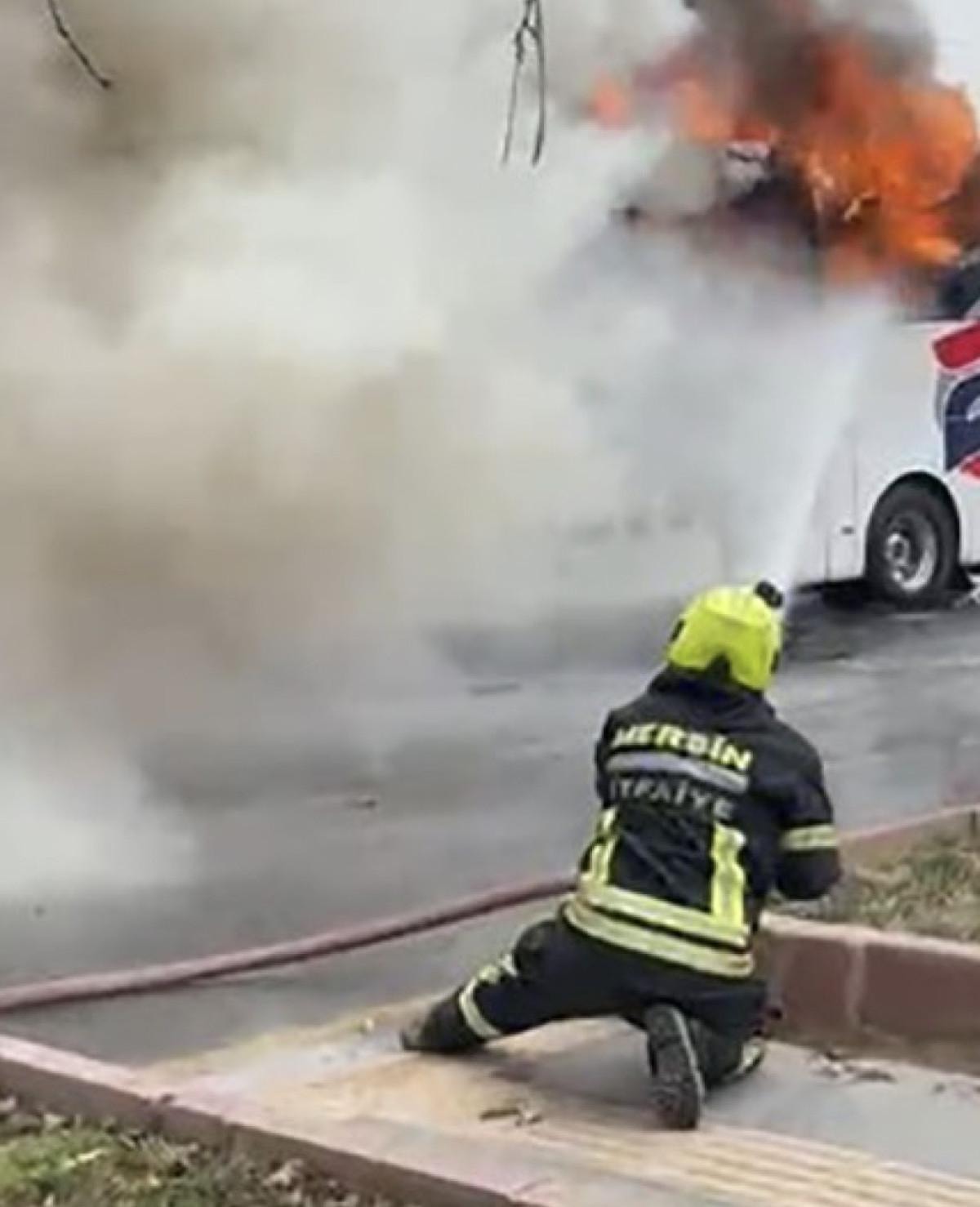 Alevlerin yükseldiğini fark eden sürücü, soğukkanlılığını koruyarak otobüsü hemen durdurdu ve yolcuları hızla tahliye etti.
