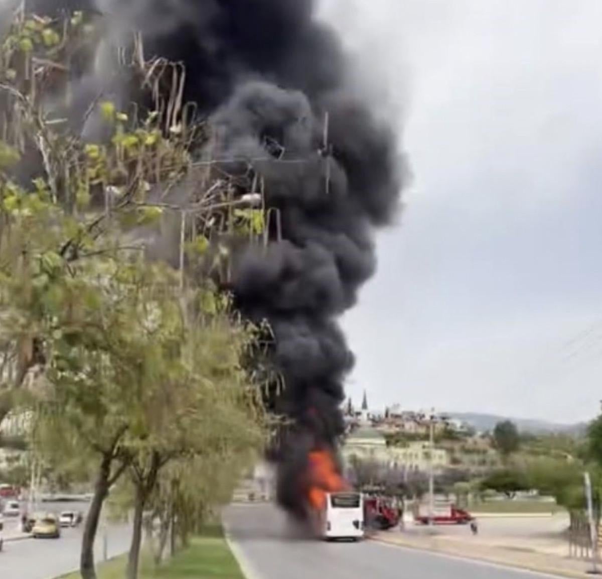 M.E.'nin kullandığı 51 BF 904 plakalı İnan Turizm'e ait yolcu otobüsü, seyir halindeyken henüz belirlenemeyen bir nedenden yanmaya başladı.