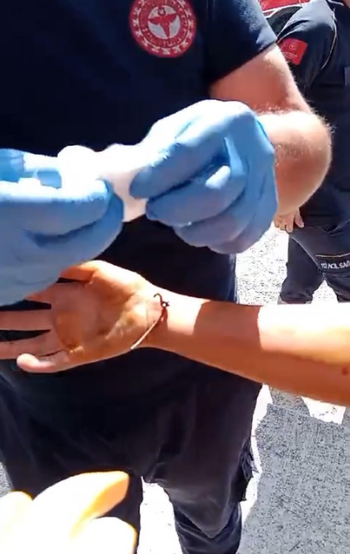 Metal tel, bölgede bulunan 12 yaşındaki B.C.'nin sağ el bilek kısmına saplandı.