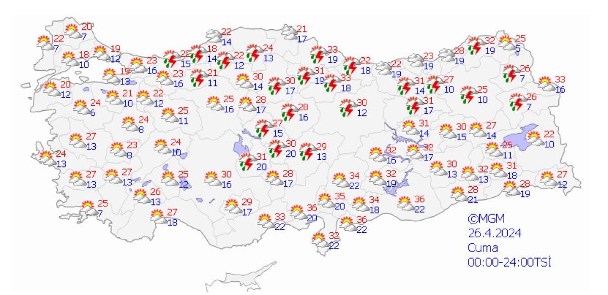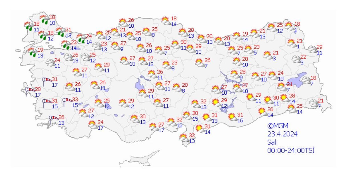 Önümüzdeki günlerde bazı illerimizde beklenen en yüksek sıcaklıklarının İstanbul , Edirne ve Kırklareli 24-26, Tekirdağ 23-25, Sakarya 28-32, Kocaeli 26-30, Yalova 24-27 derece aralıklarında olmasının tahmin edildiği kaydedildi.