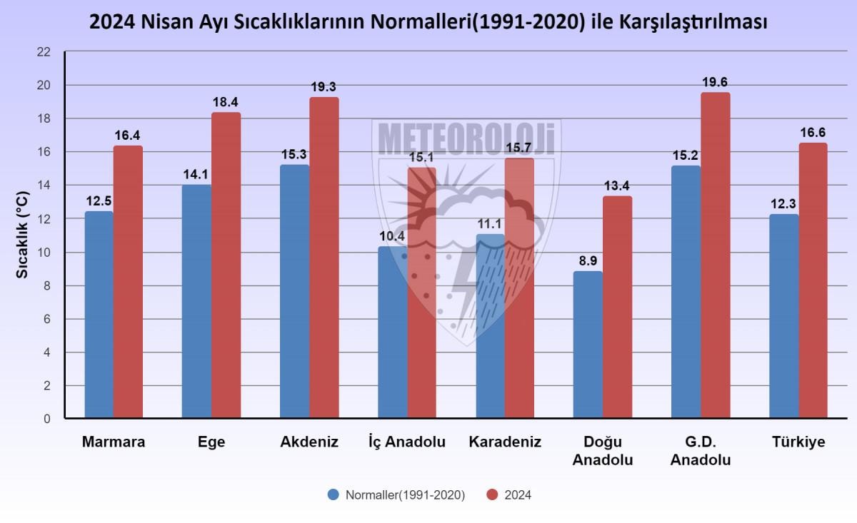 Meteoroloji Genel Müdürlüğü 2024 Yılı Nisan Ayı Ortalama Sıcaklıklarının 1991-2020 Normallerine Göre Mukayesesi Raporu açıklandı.