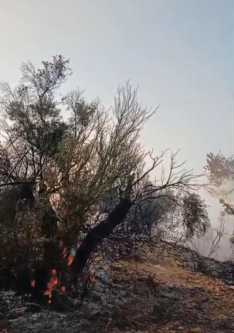Muğla'nın Milas ilçesi Bafa Gölü Pınarcık köyü yakınlarındaki zeytinlikte dün saat 15.00 sıralarında yangın çıktı.