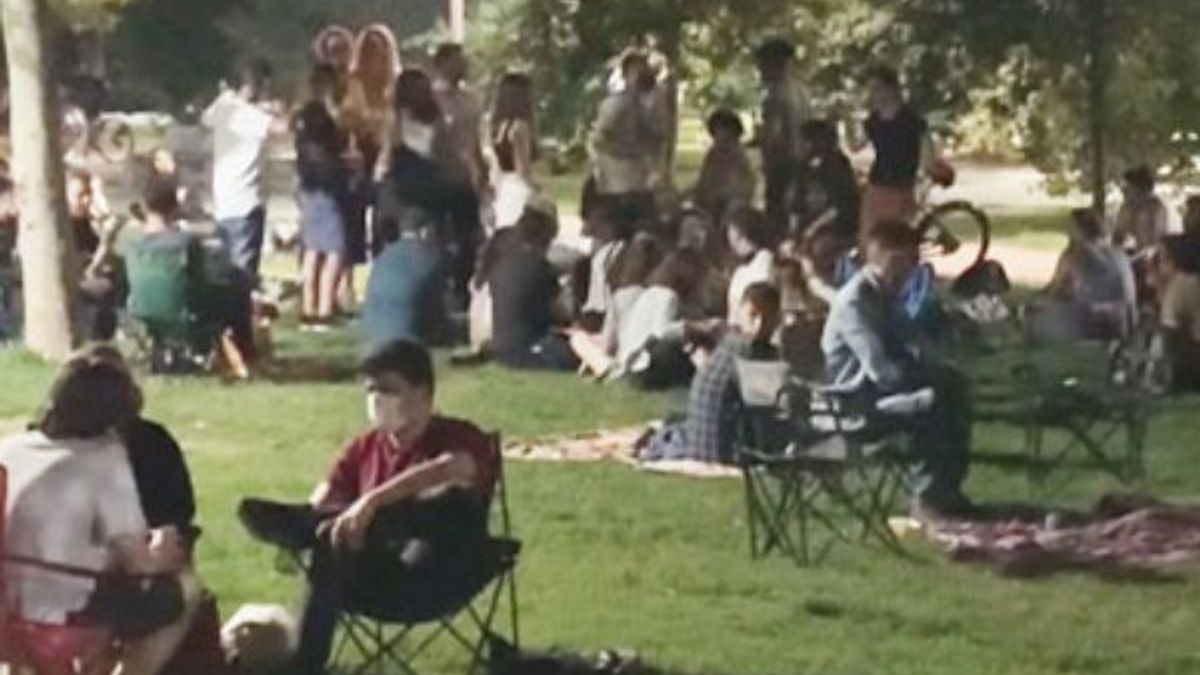 Koronavirüs salgınına aldırmadan müzik eşliğinde dans eden gençlerin, sosyal mesafe kuralını hiçe saydıkları görüldü.