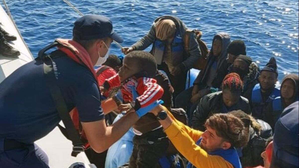 Lastik botun içinde geri itilen 34 göçmen kurtarıldı
