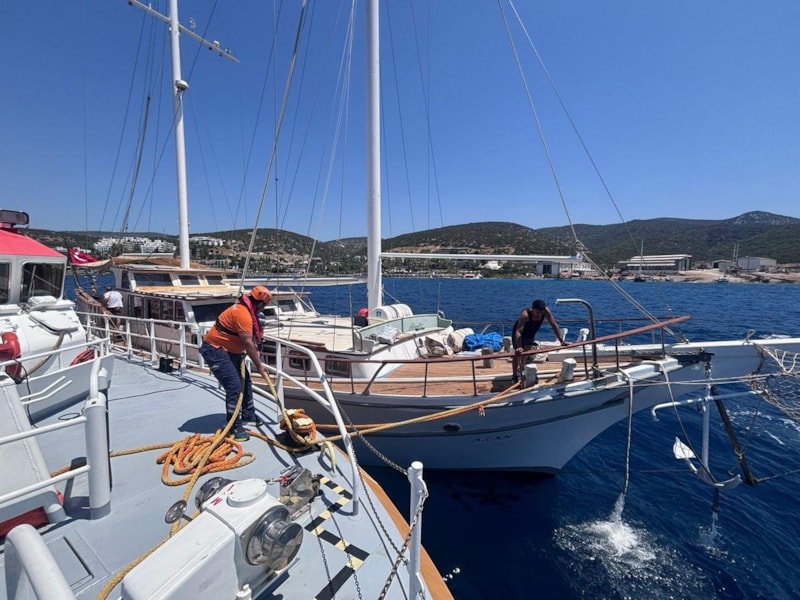 KIYEM-6 hızlı tahlisiye botuyla bölgeye ulaşan ekipler, tekneyi yedekleyerek İçmeler Ağanlar Tersanesi’ne güvenli bir şekilde yanaştırdı.