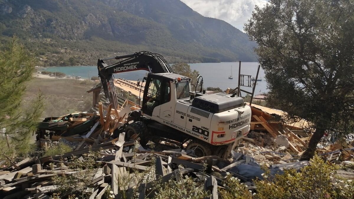 Kararın ardından Menteşe İlçe Jandarma ekiplerinin güvenlik önlemleri altında başlayan yıkımlarda birinci etap tamamlandı.