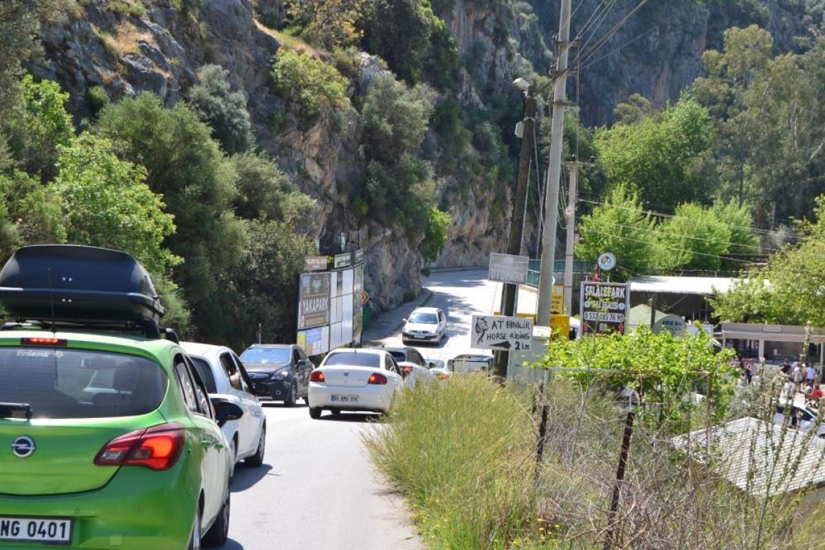 Yoğunluk nedeniyle Saklıkent yolunda zaman zaman araç kuyruğu olurken kanyonu ziyarete gelen tatilciler, gişe önünde ve kafelerde hareketlilik oluşturdu.